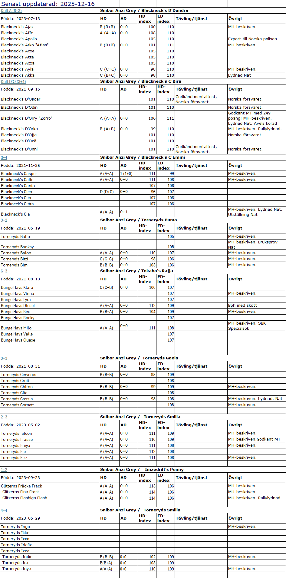 vi statistik och resultat för våra avelsschäfrar. Här hittar du information om